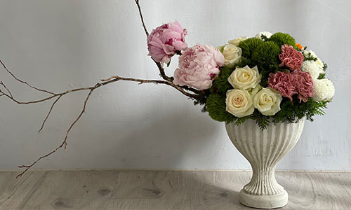 插花課程:商業盆花*2(自然盆花、迎賓桌花)、大型落地開幕花*2(三角花架、大圓盤)、禮物花盒、提籃花藝、水果花禮、抱抱桶